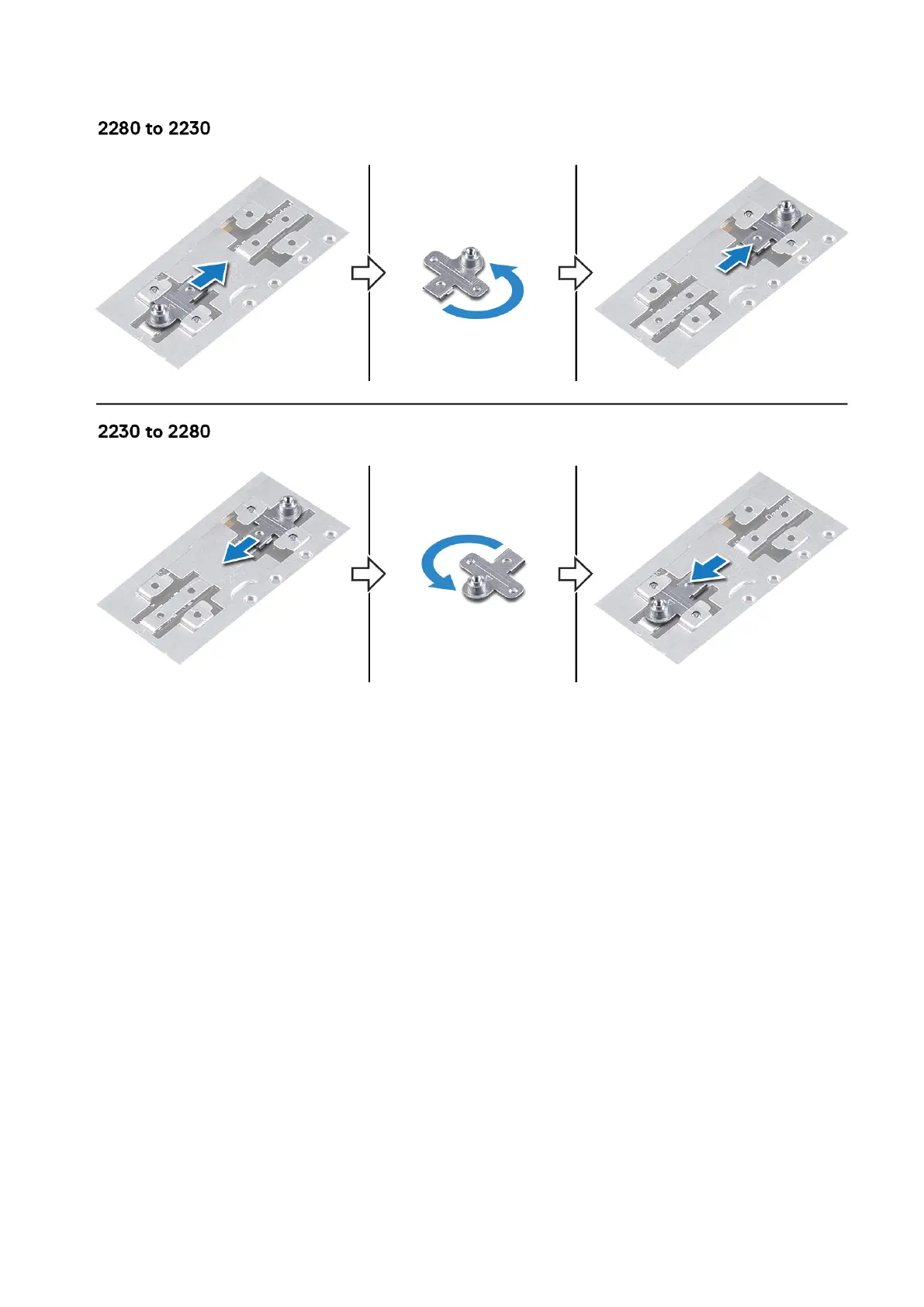 6. Press the other end of the solid-state drive/Intel Optane memory module and replace the screw (M2x3) that secures the solid-state