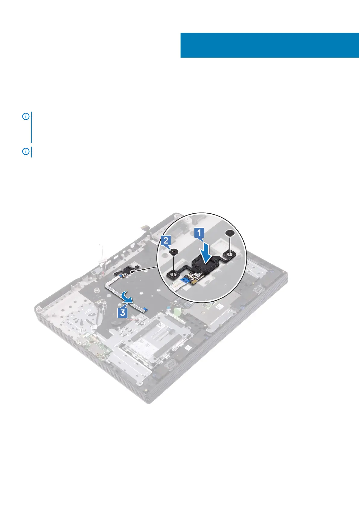 3. Adhere the fingerprint reader cable on the palm-rest and keyboard assembly.