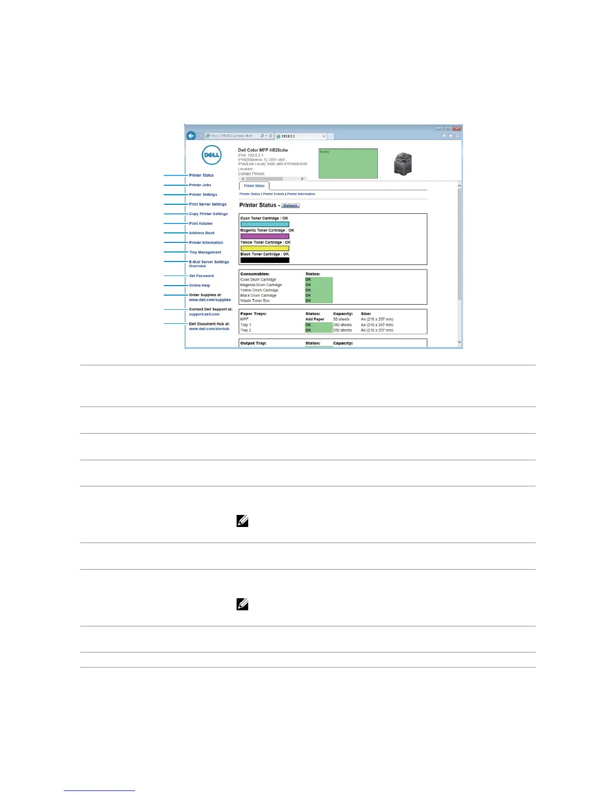 1 Printer Status Provides immediate feedback on the printer supply status.