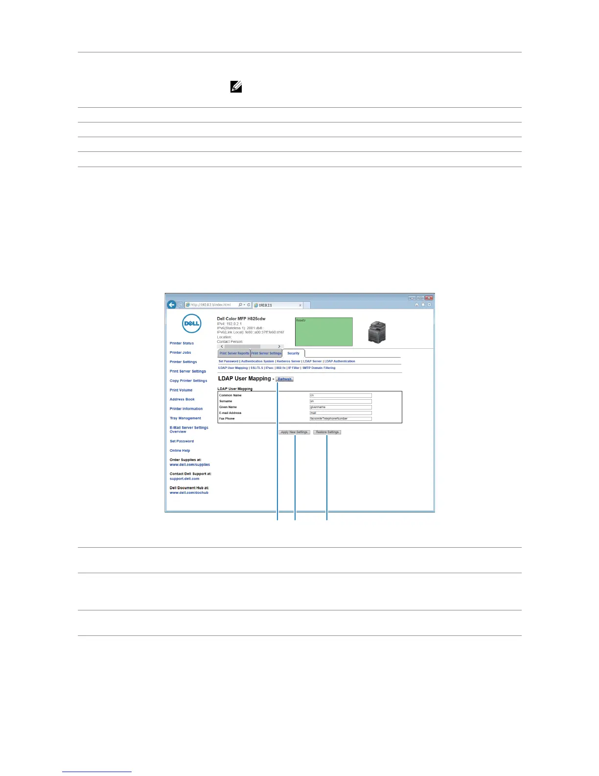 2 Apply New Settings Button Submits new settings made on Dell Printer Configuration Web Tool