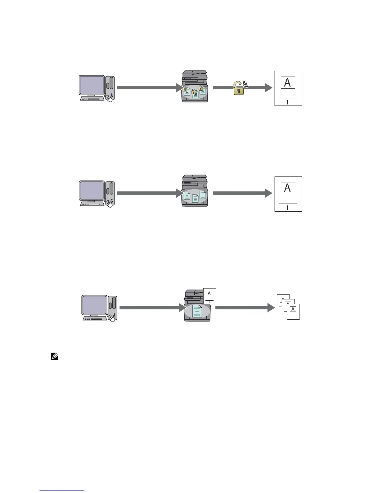 You can store print jobs in the printer for re-printing without a password. The stored jobs
