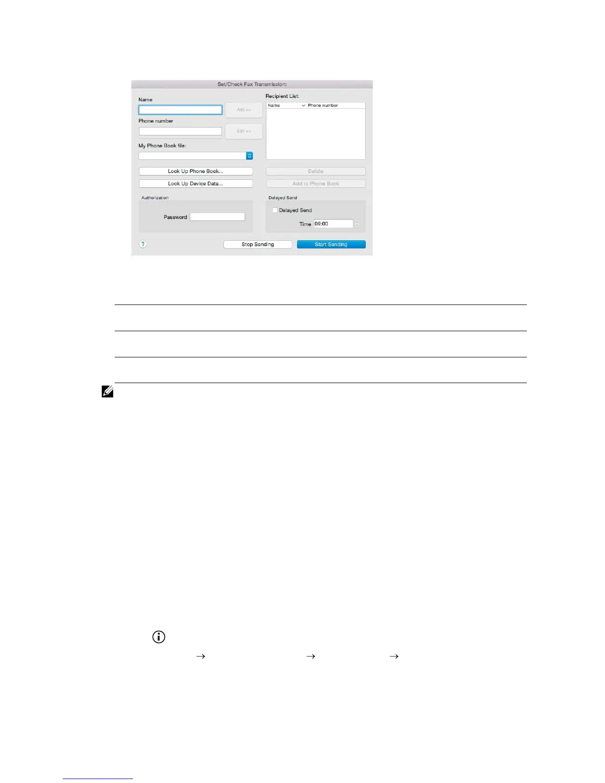 Look Up Device Data Select from a list of fax numbers saved in the phone book on the
