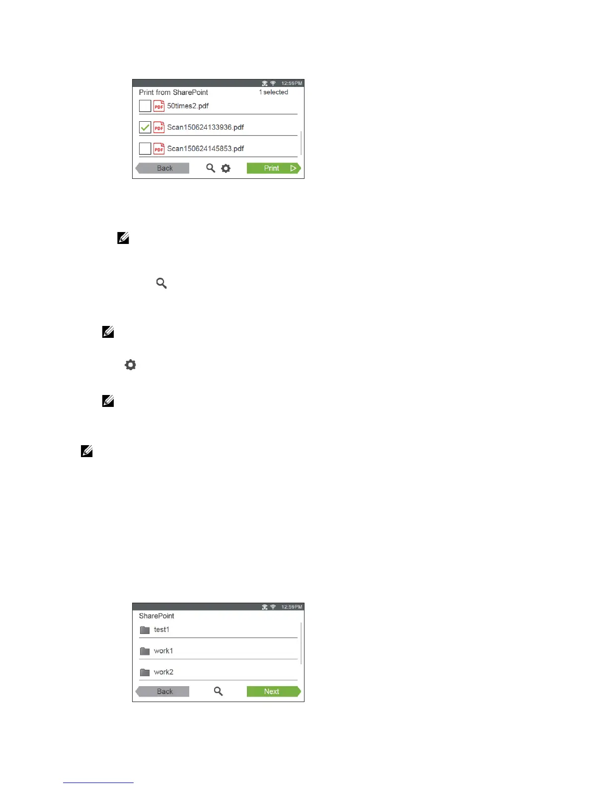• You can start printing by tapping Print in any screens of Print from SharePoint, Search