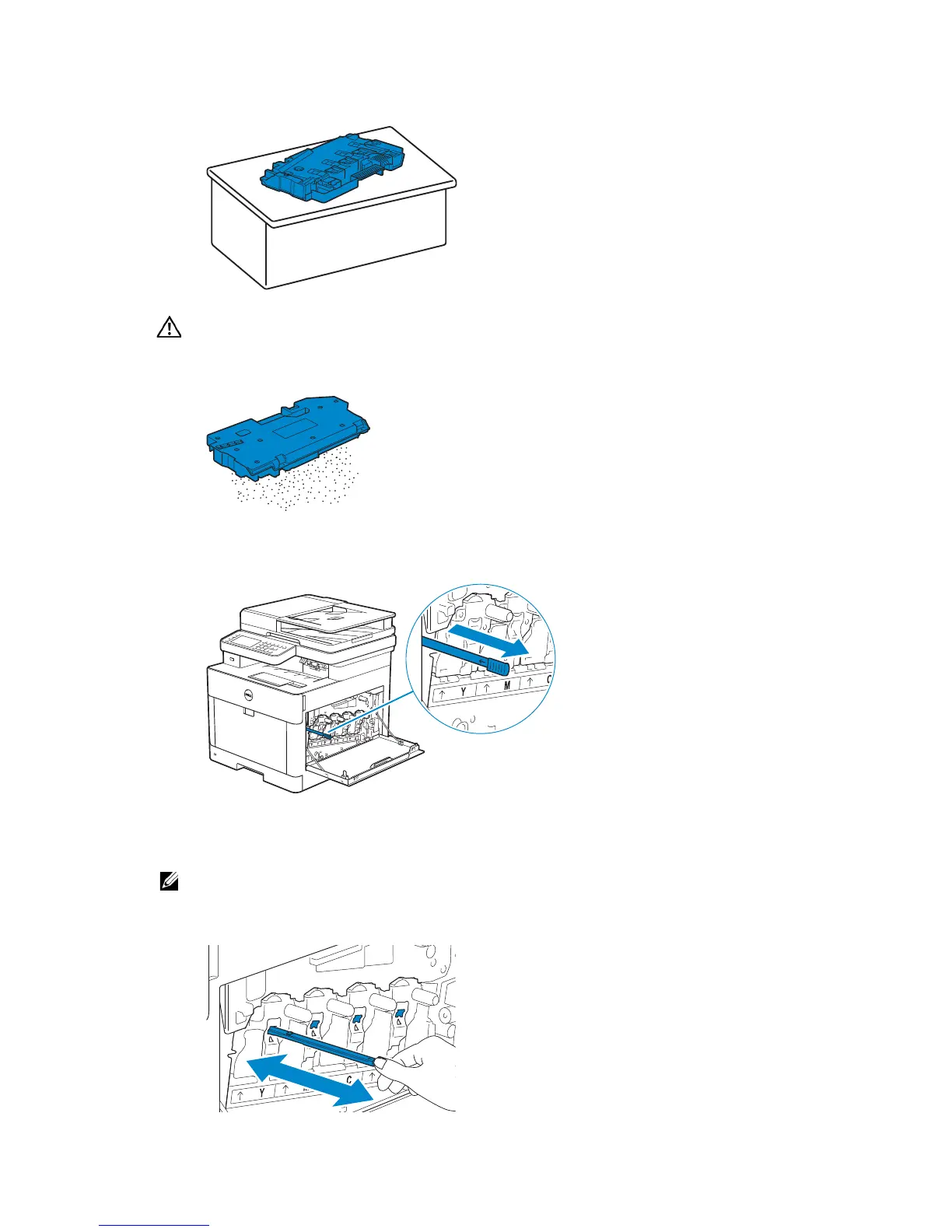 6 Insert the cleaning rod into one of the four holes of the tabs on the drum cartridges