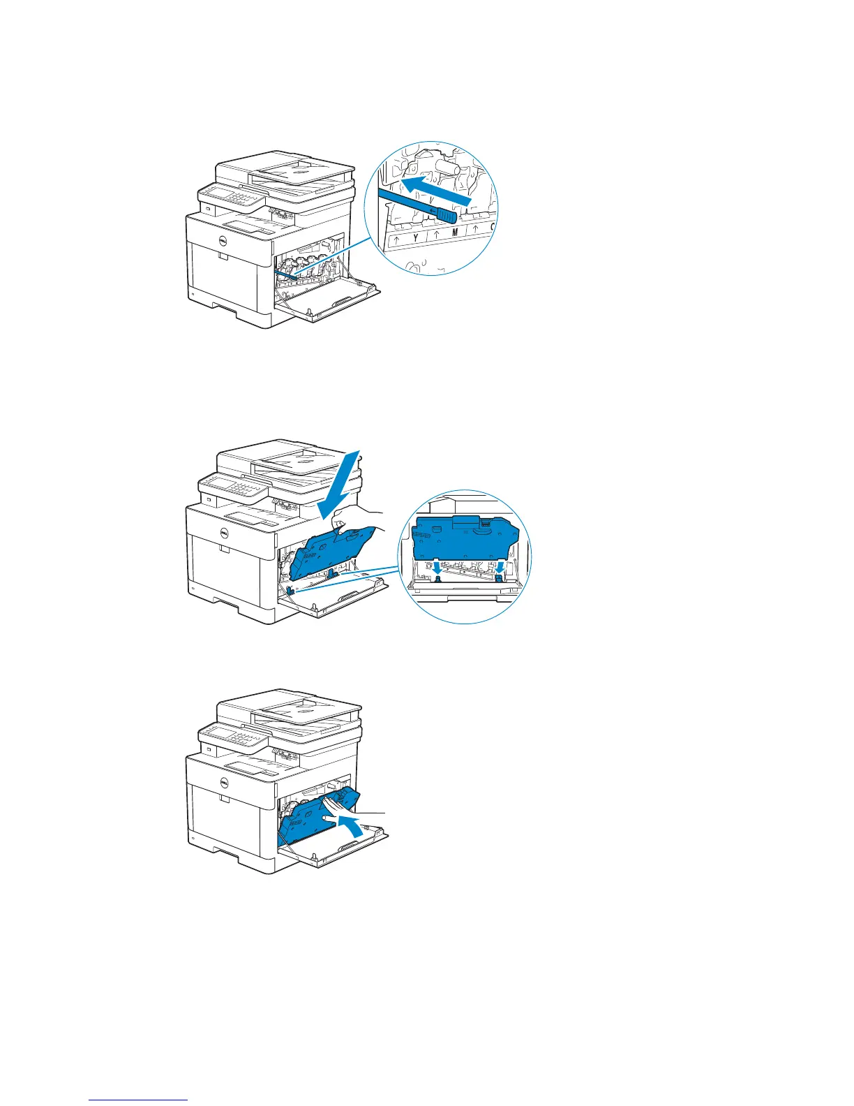 10 Push on the handle of the waste toner box until it clicks.