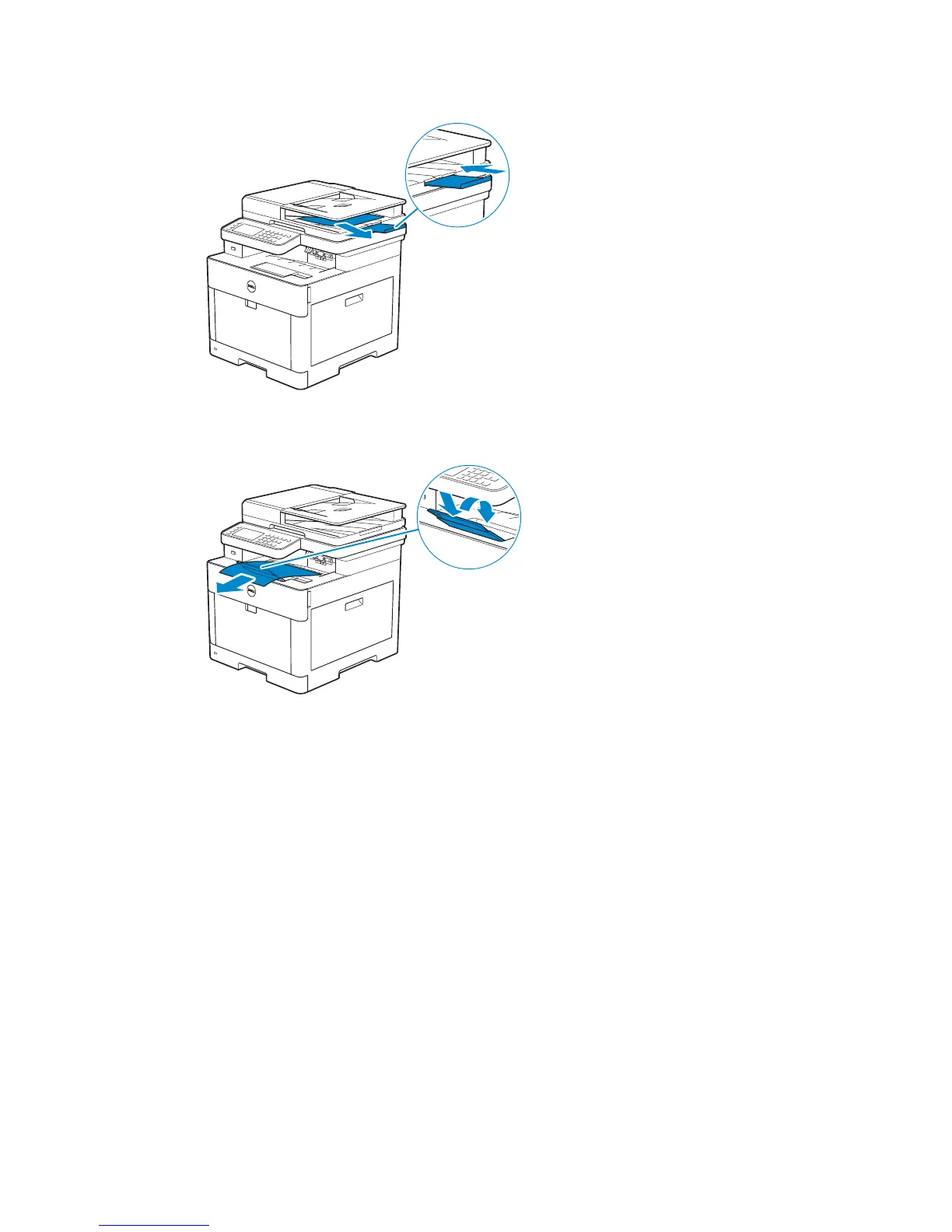 3 Remove any paper in the output tray, and then return the output tray extension.