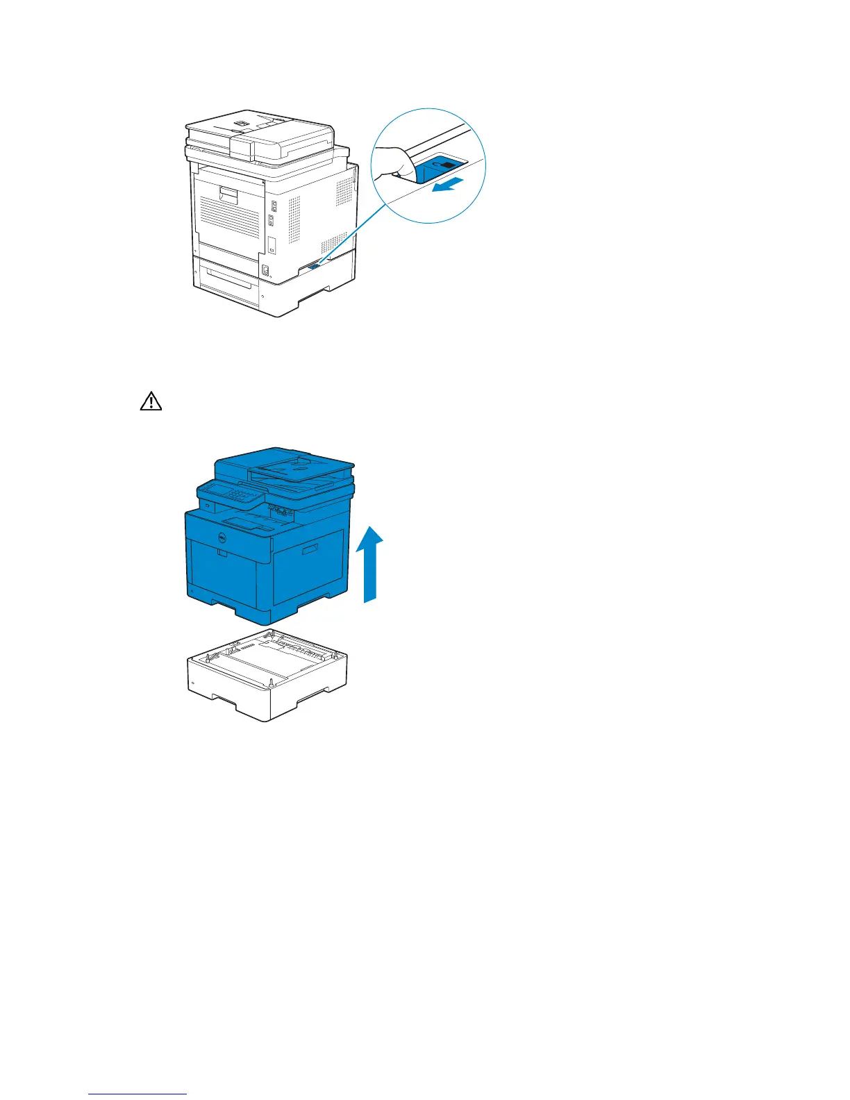 3 Gently lift the printer off the optional 550-sheet feeder, and then place it on a level