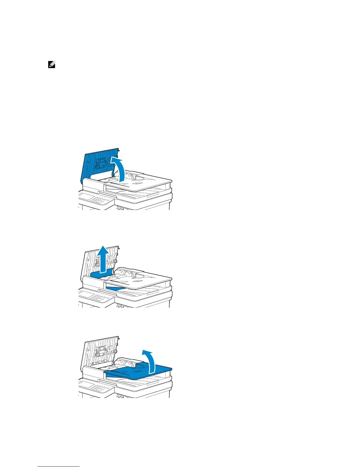 3 Remove any jammed documents from inside the DADF cover by gently pulling the