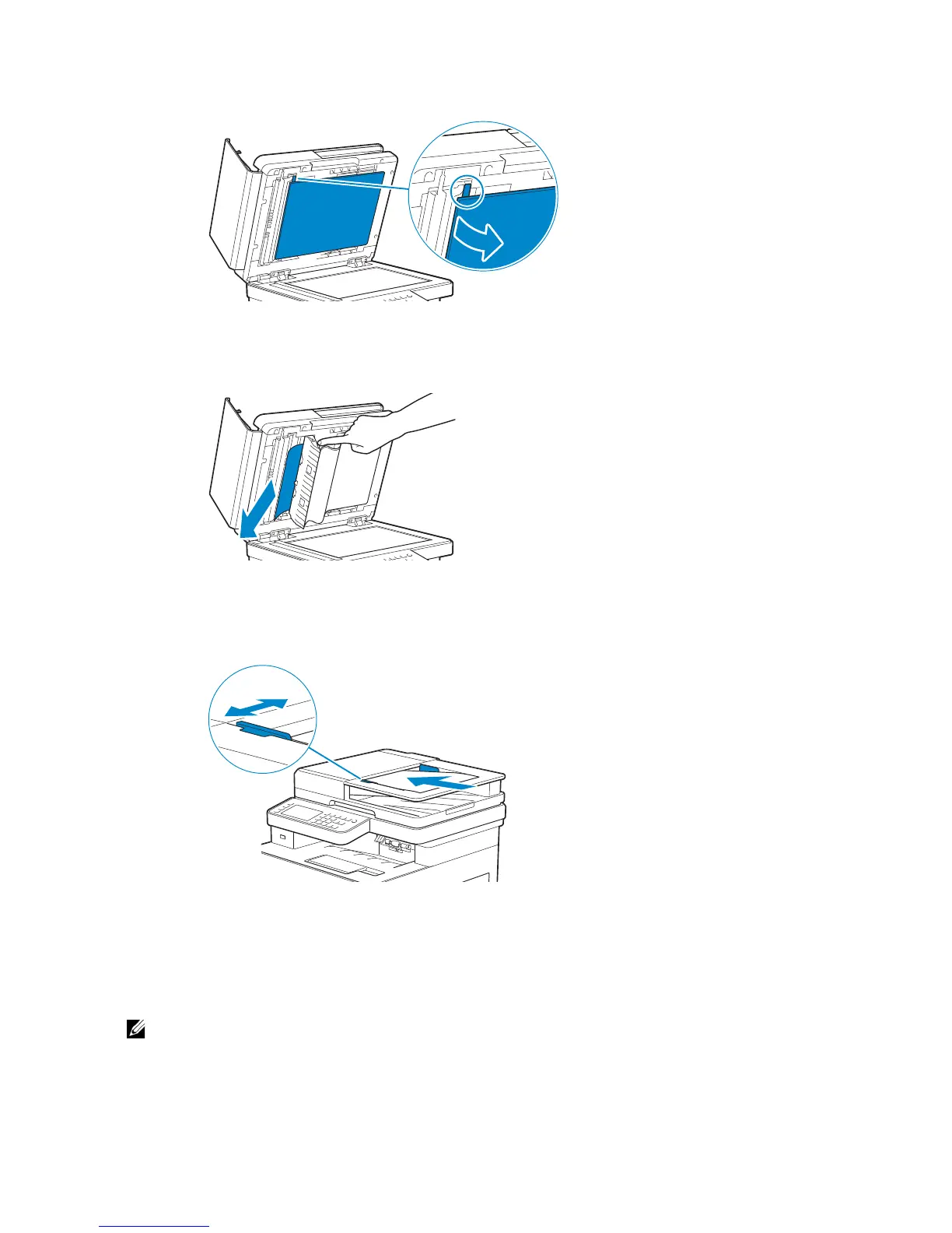 3 Remove the document from inside the DADF chute cover by carefully pulling it to