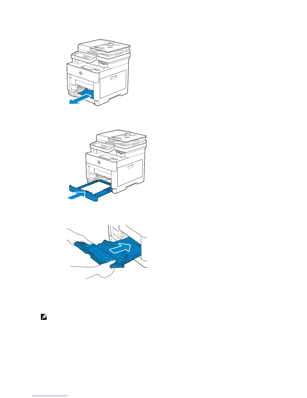 6 Insert the MPF into the printer, and then load the paper back on the MPF.