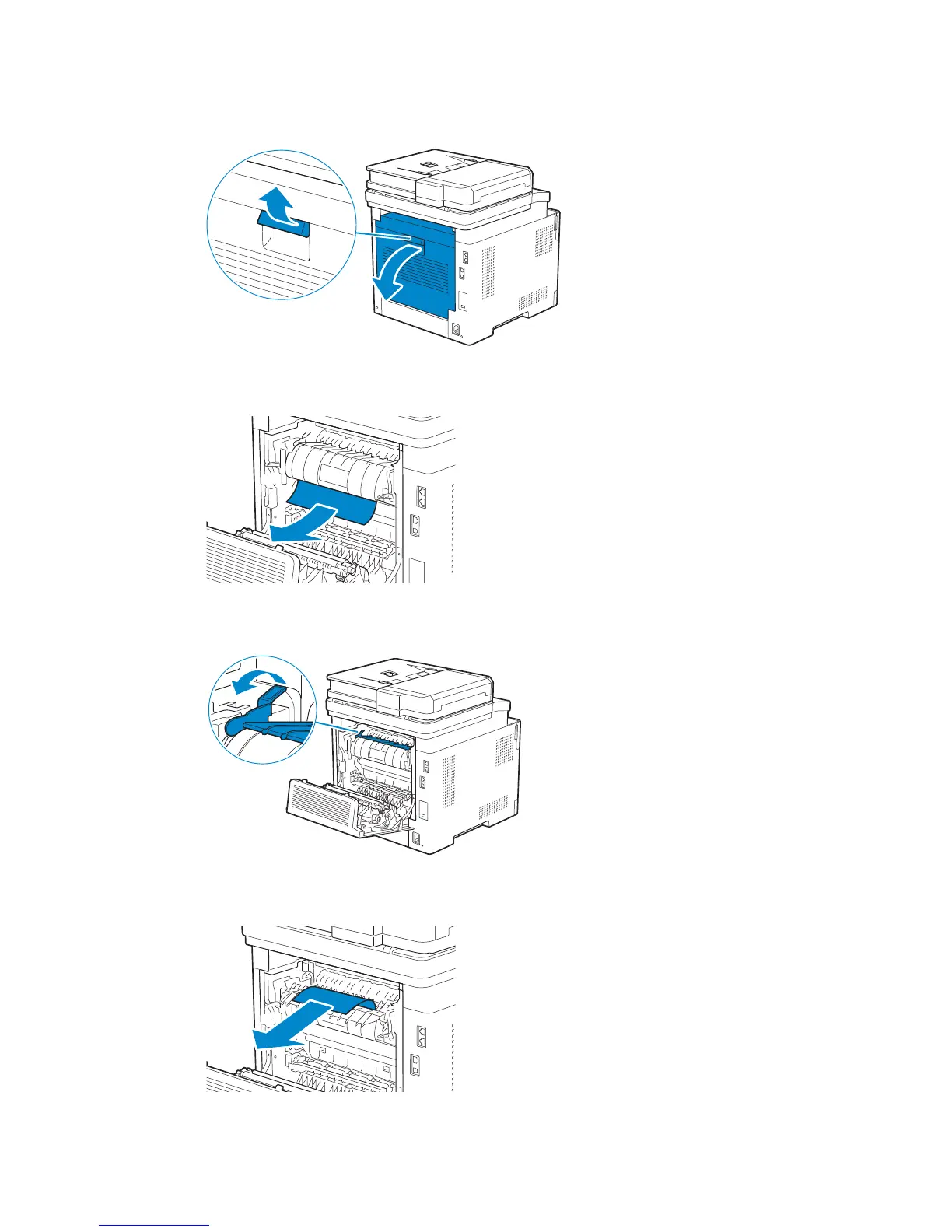 3 Pull the tab that is located above the fusing unit and hold the part open.