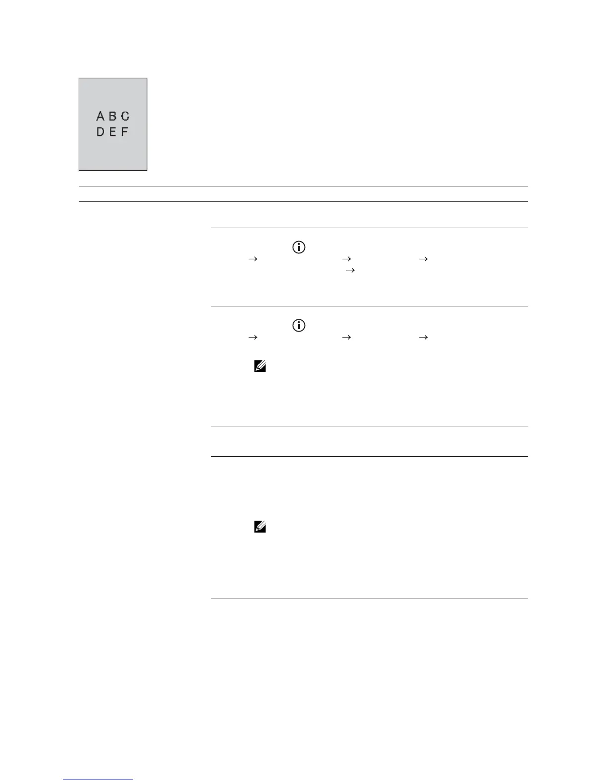 The printed result is foggy. 1 If the whole page of the printout is light, contact Dell. If not, proceed