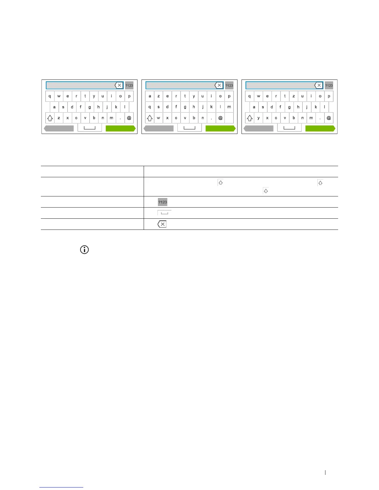 During operations, a keyboard for entering text sometimes appears. The following describes how to enter text.