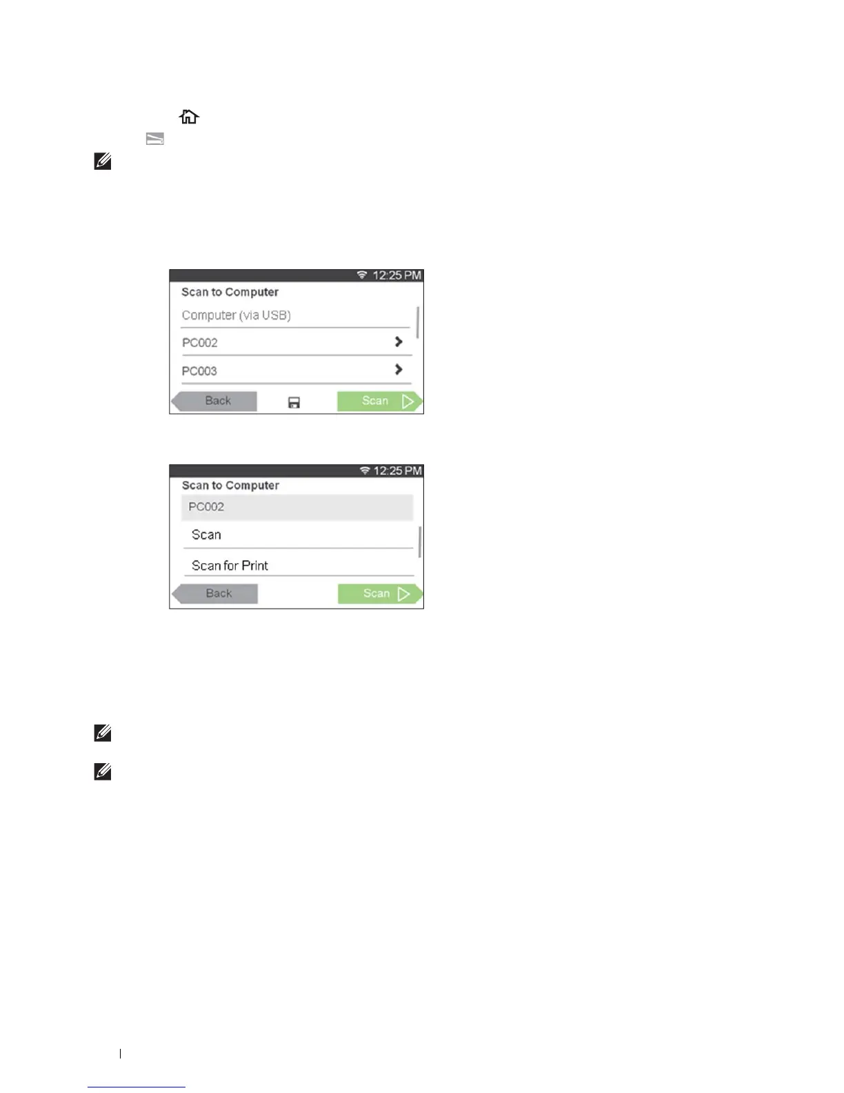 Swipe the screen until the desired computer you want to send the scan job to appears, and then select that