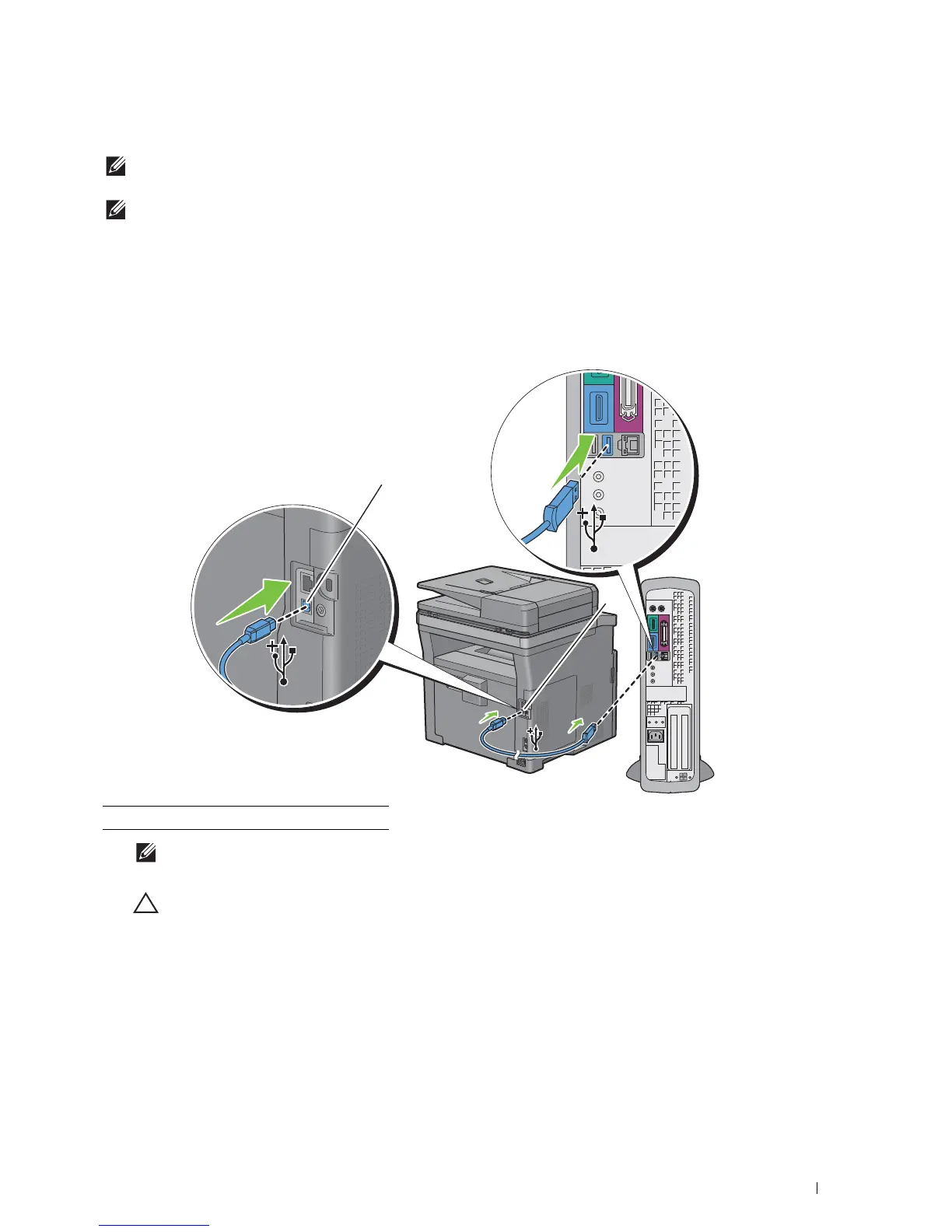 Do not connect the printer USB cable to a USB port located on the keyboard.