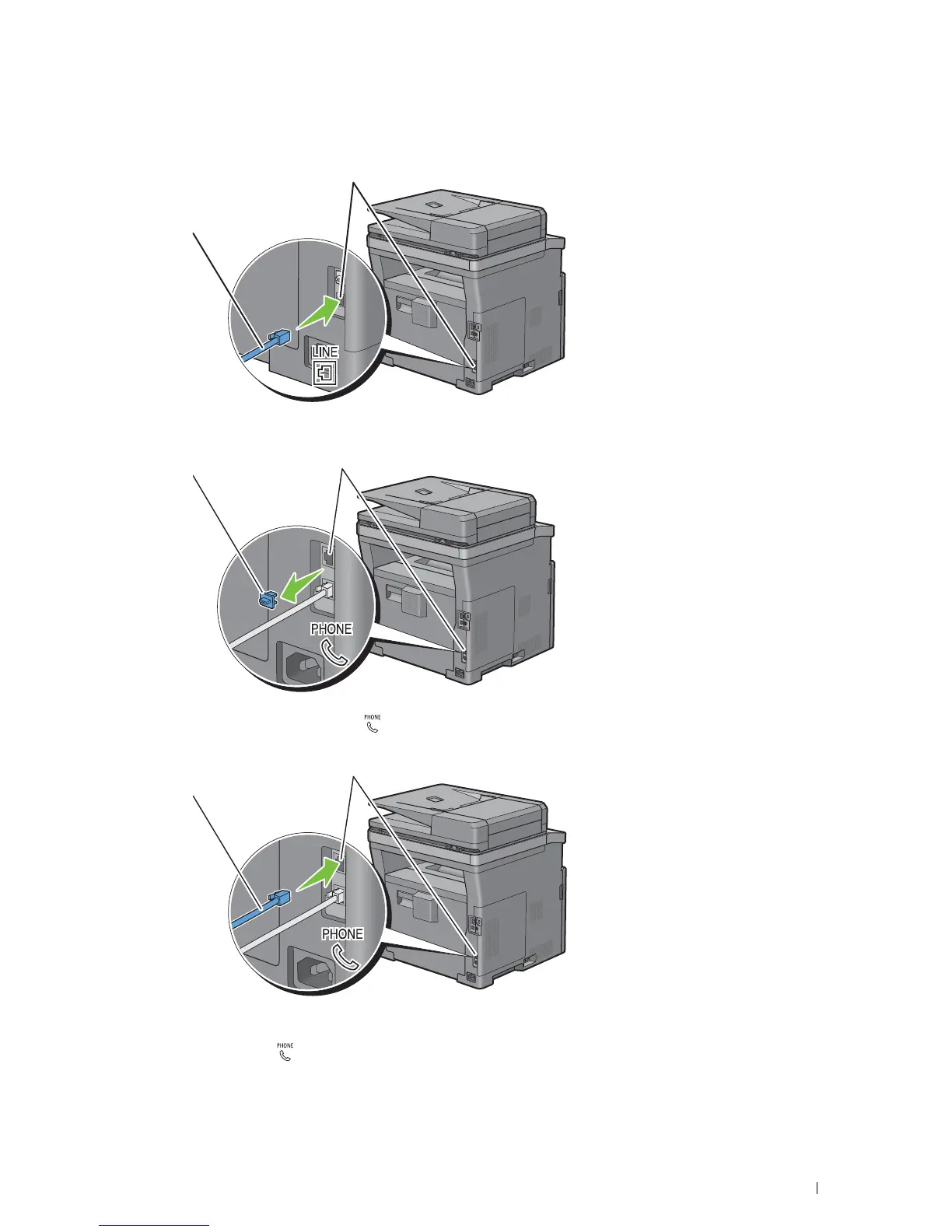 To connect a telephone and/or answering machine to your printer, connect the telephone or answering machine