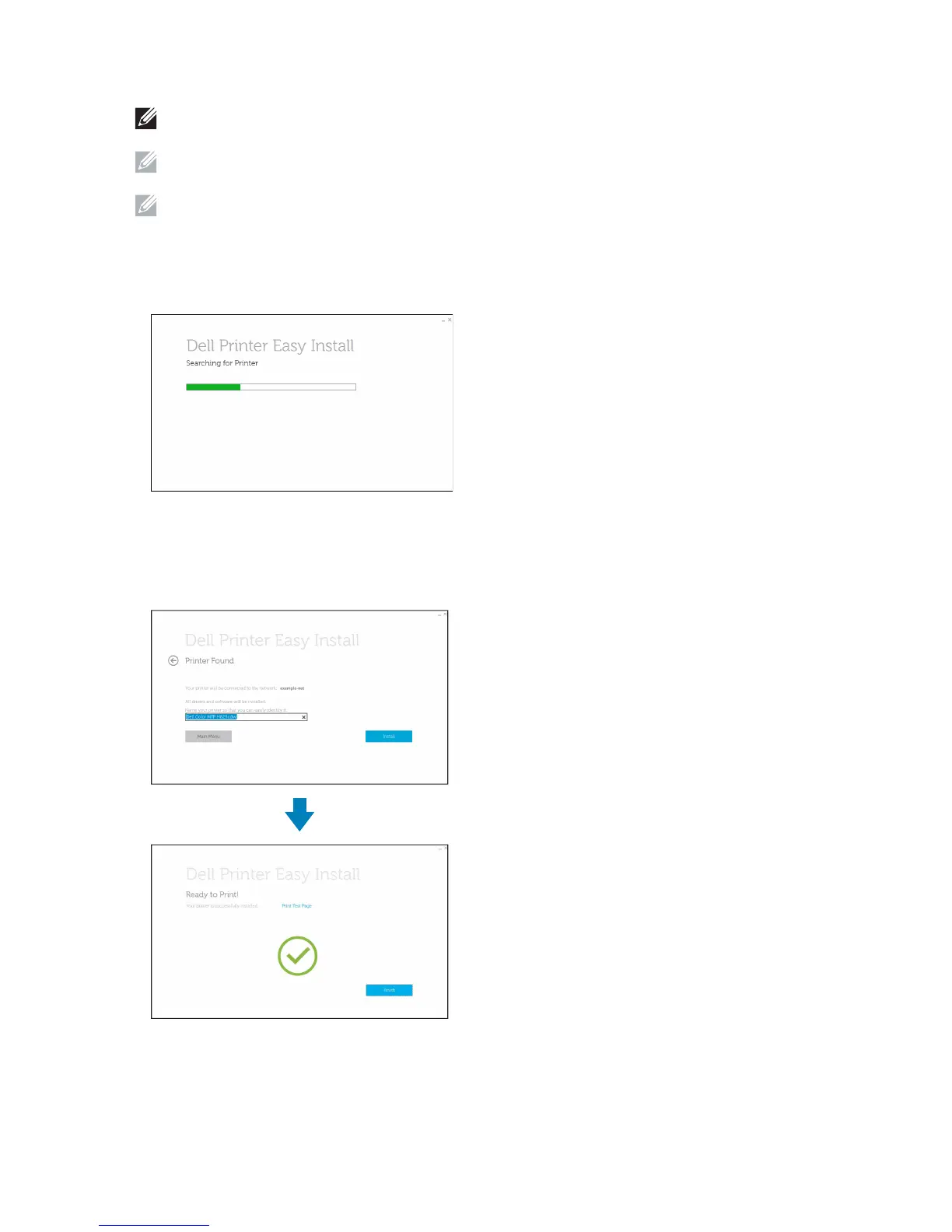 Espere a que el asistente de Dell Printer Easy Install encuentre la impresora.