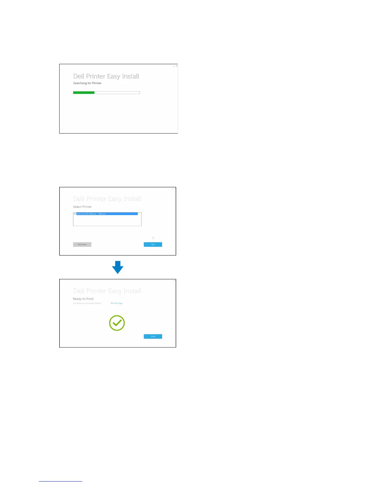 Espere a que el asistente de Dell Printer Easy Install encuentre la impresora.