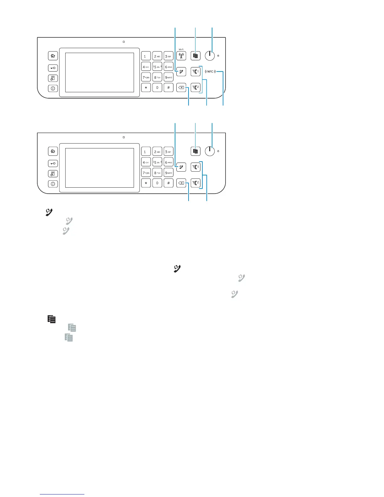 Inserts a pause into a telephone number. When the (Redial/Pause) button is pressed, "-" appears on the touch panel.