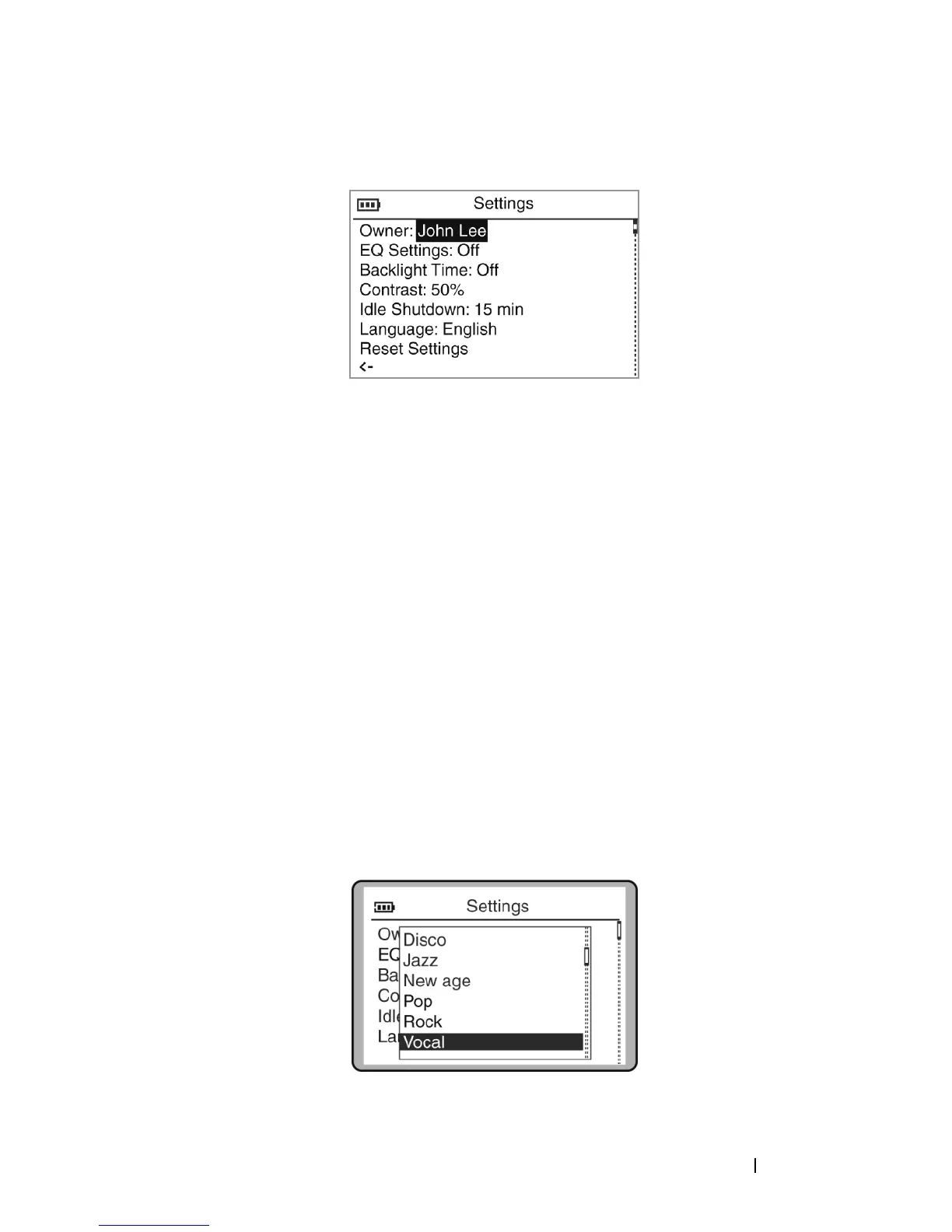Scroll-select the current EQ setting. A list of EQ presets appears. To