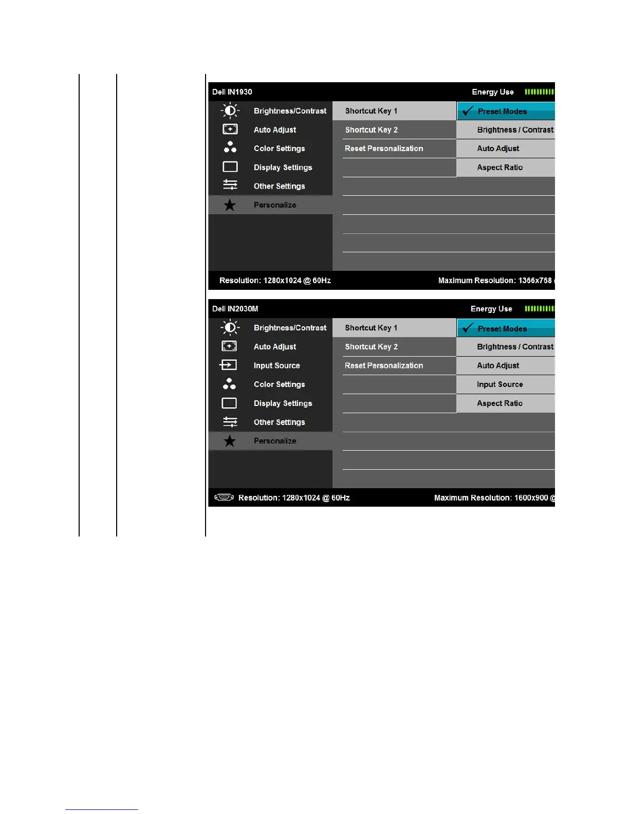 User can select from "Preset Modes", "Brightness/Contrast", "Auto Adjust", "Input Source"(for IN2030M only), "Aspect Ratio" and set as
