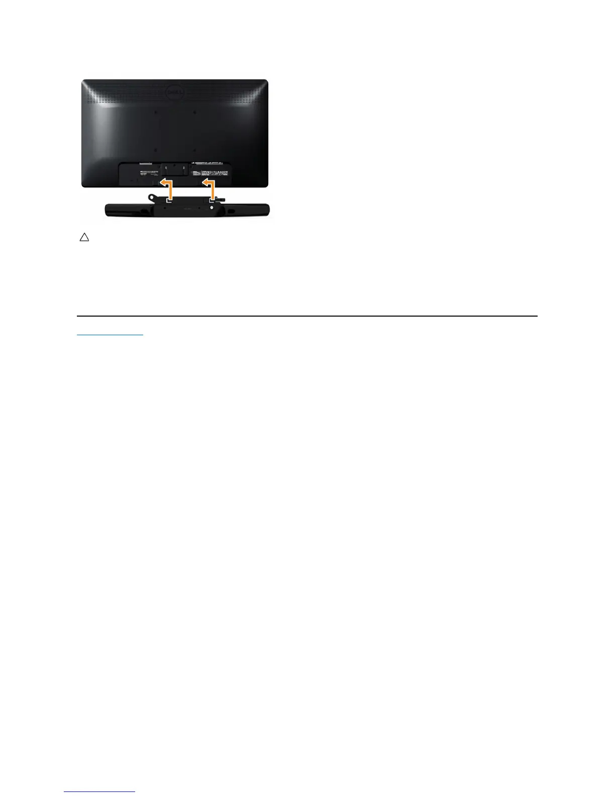 Working from the back of the monitor, attach Soundbar by aligning the two slots with the two tabs along the bottom of the monitor.