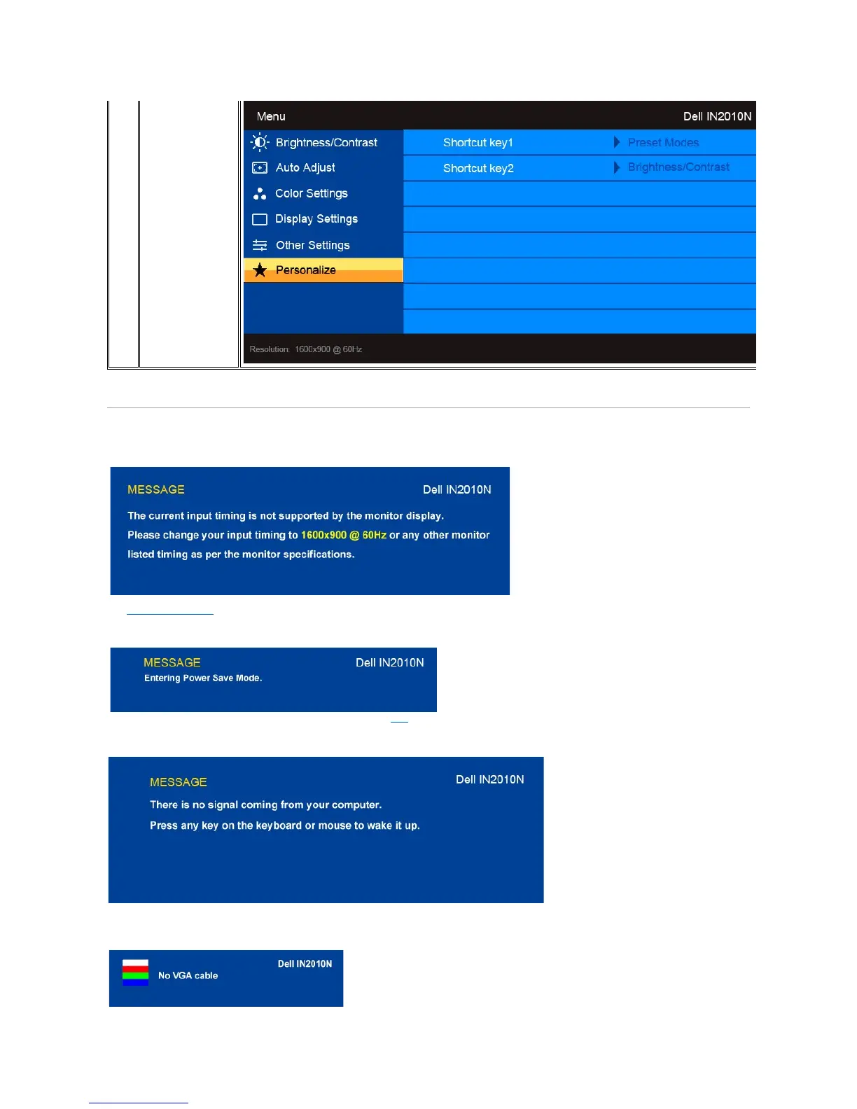 Dell IN2010N - OSD Warning Messages