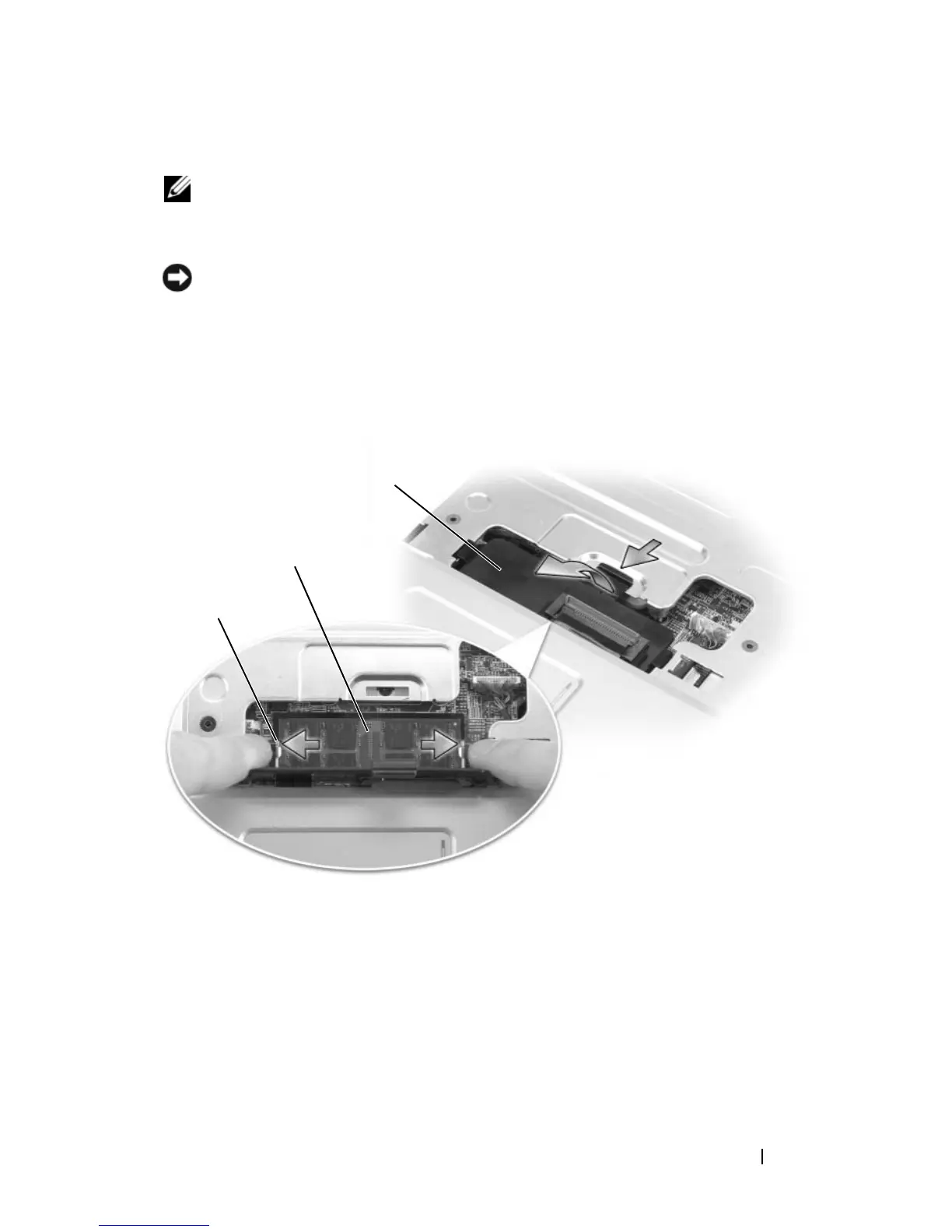 NOTICE: To prevent damage to the memory module connector, do not use tools to