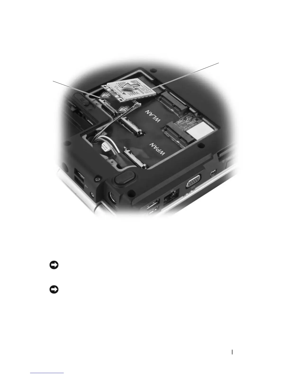 NOTICE: To avoid damage to the WWAN card, never place cables under the card.