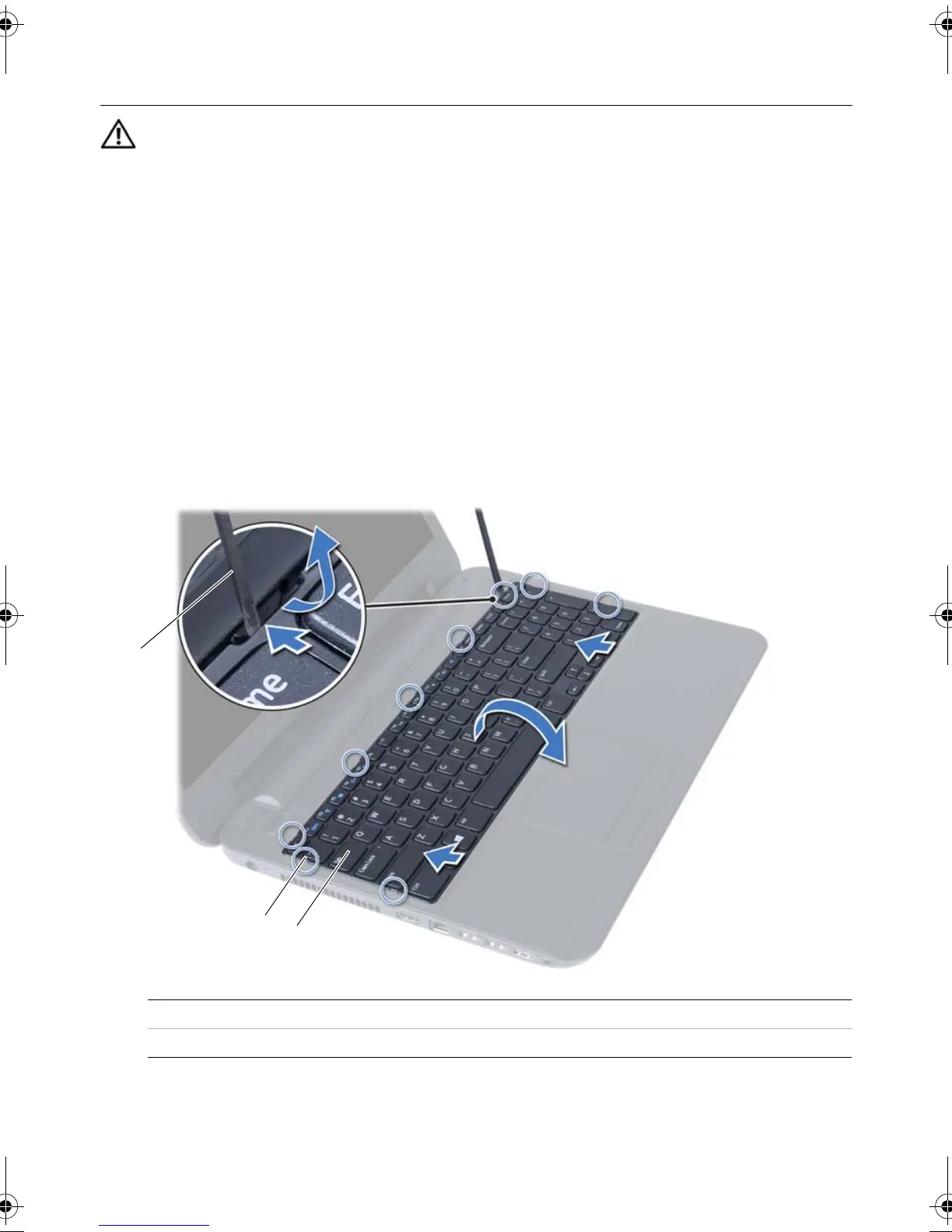 2 Using a plastic scribe, release the keyboard from the tabs on the