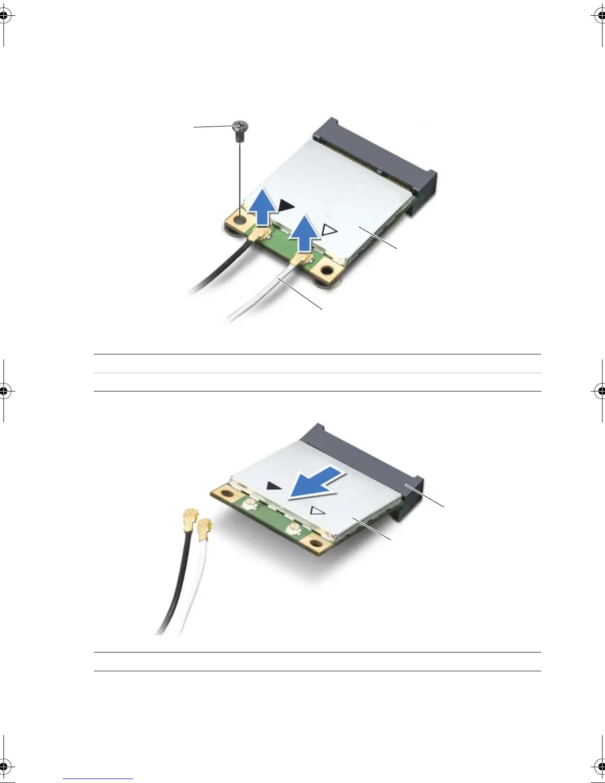 1 Disconnect the antenna cables from the connectors on the wireless mini-card.