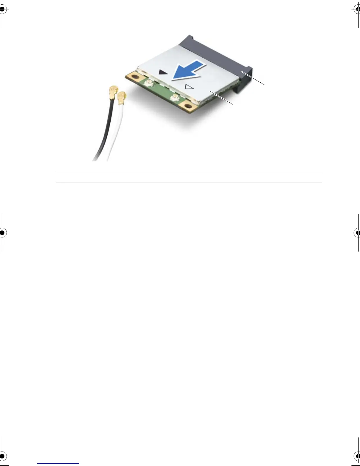 3 Slide and remove the wireless mini-card out of the mini-card connector.