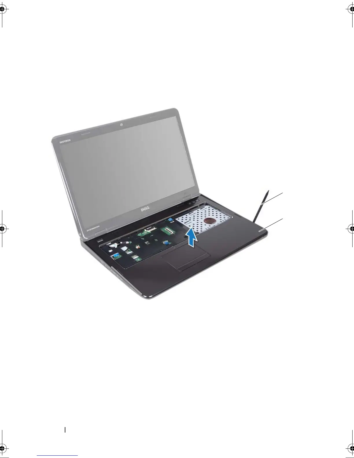 Using a plastic scribe, carefully pry out the palm-rest assembly along the