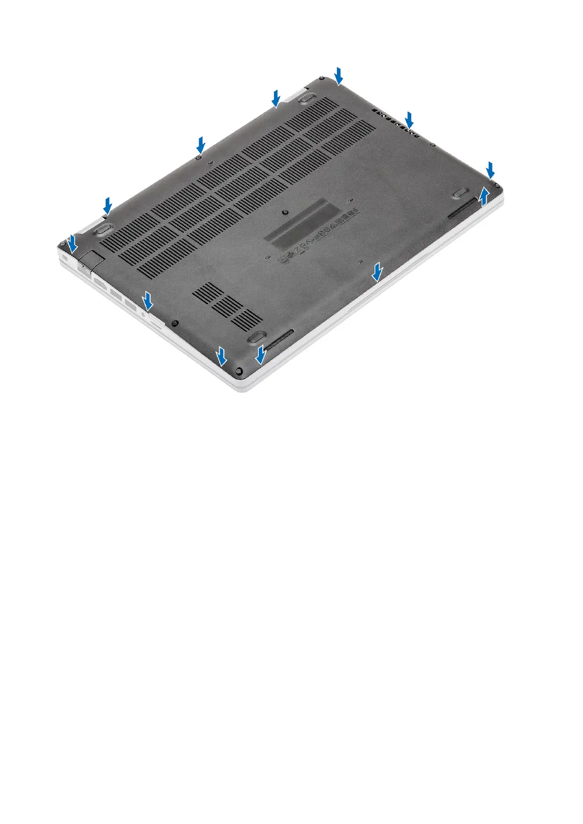 3. Tighten the eight captive screws to secure the base cover to the computer.