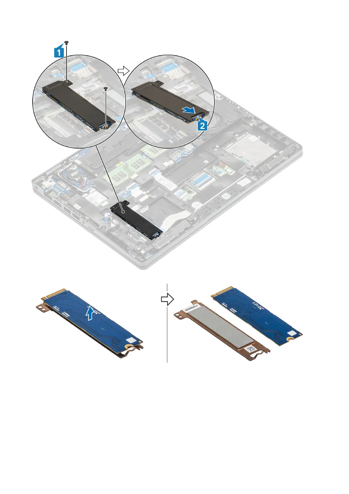 1. Place the M.2 SSD into the slot on the palmrest [1].