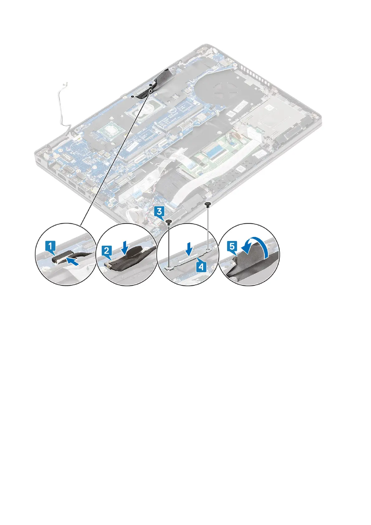8. Connect the fingerprint cable to the connector on the system board [1].