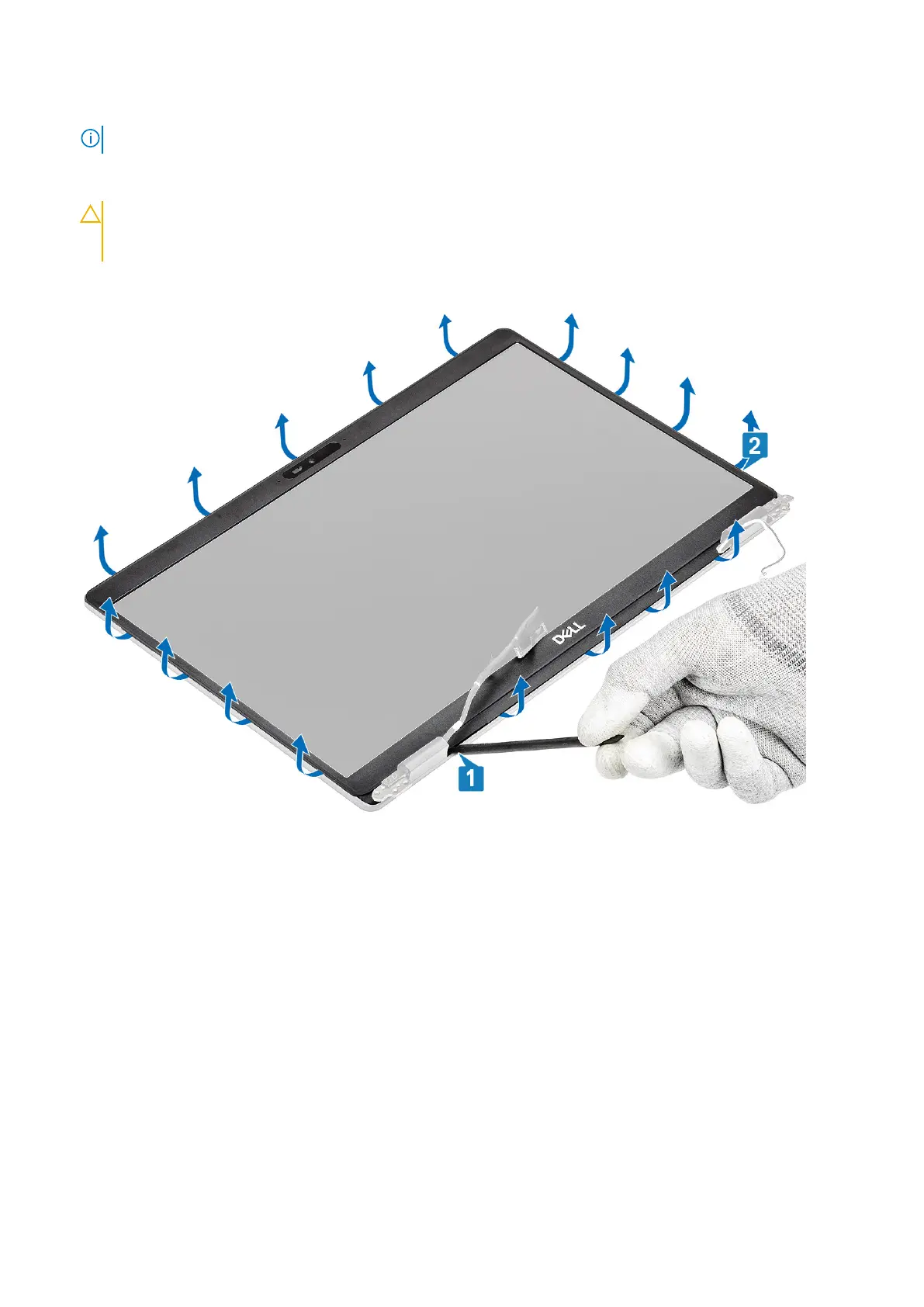 CAUTION: When prying open the display bezel, ensure to pry along the outside edge of the display bezel