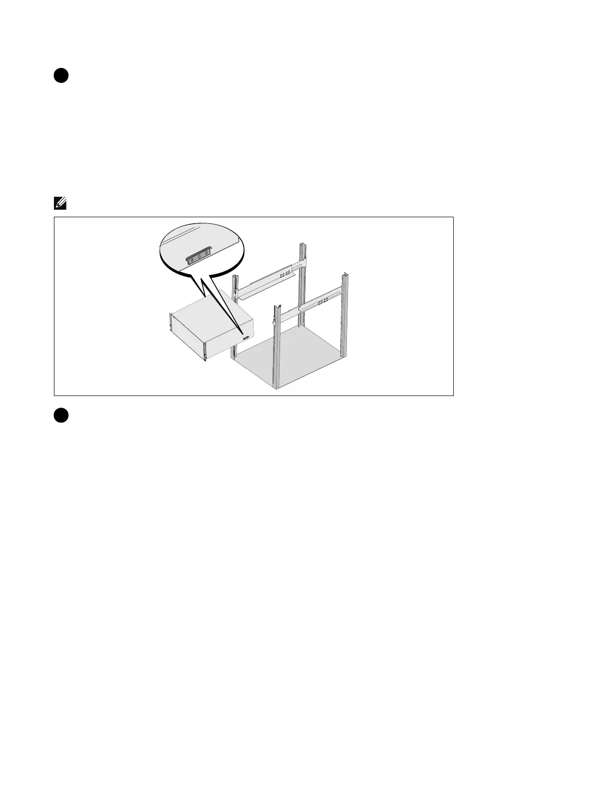 Engage the back end of the rail until it fully seats on the vertical rack flange and the hook latch