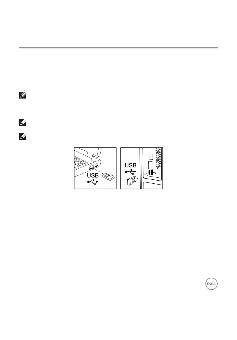 1 Connect the Dell Universal USB receiver to the USB port on your computer.