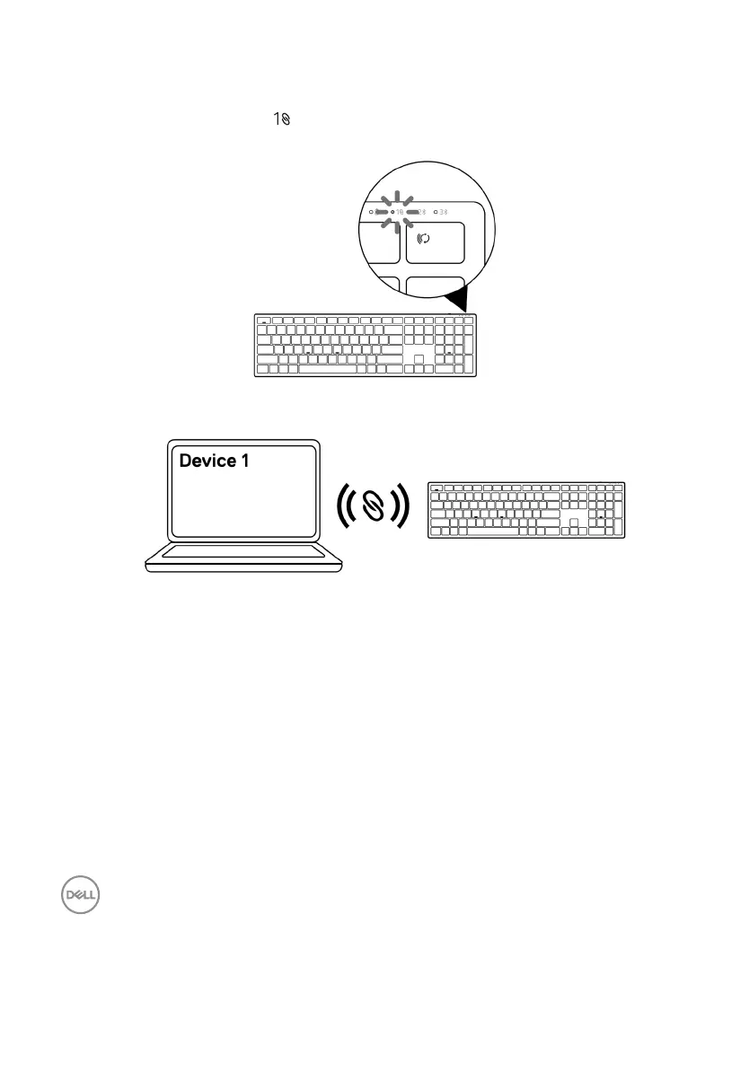 2 The connection-mode light ( ) on the wireless keyboard is set to Dell Universal Pairing