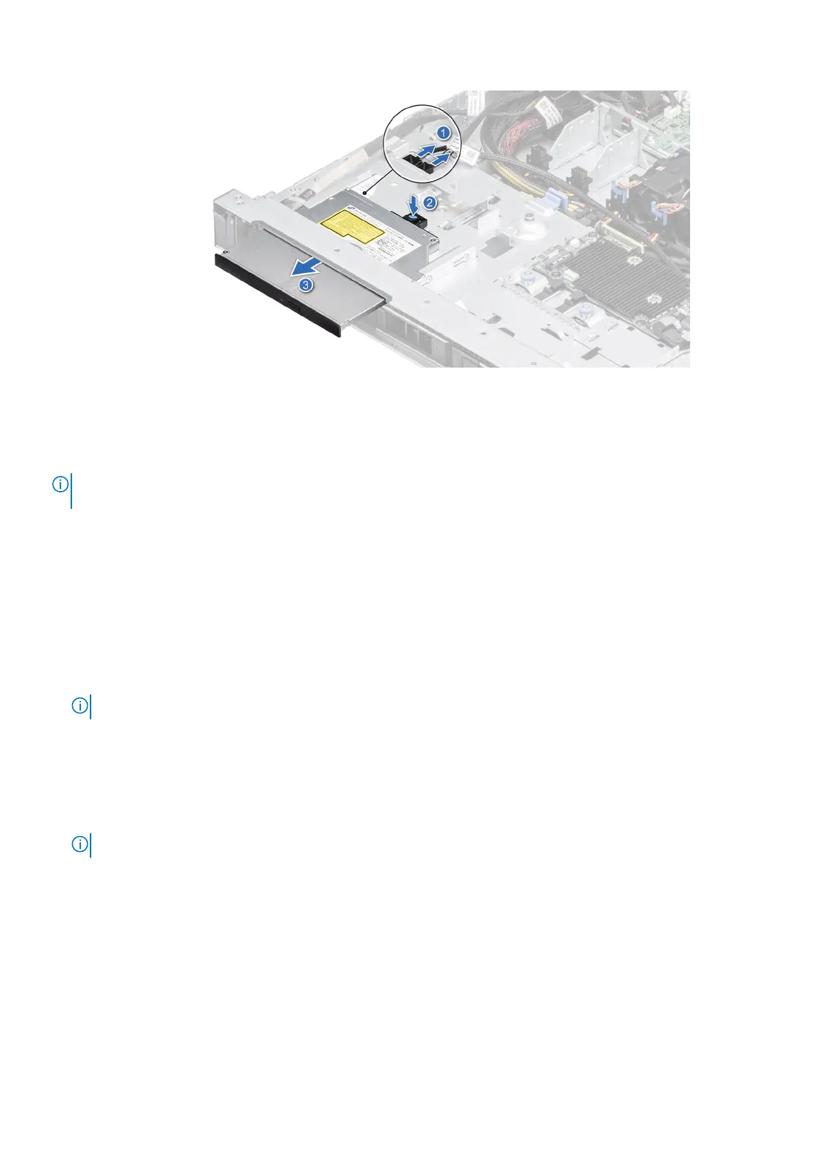 3. If installed, remove the optical drive blank by pressing the blue release tab at the back of the blank and pushing the blank out