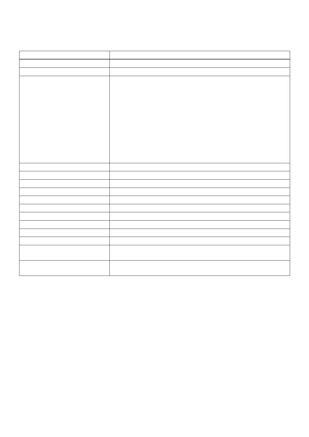 Specifications Value