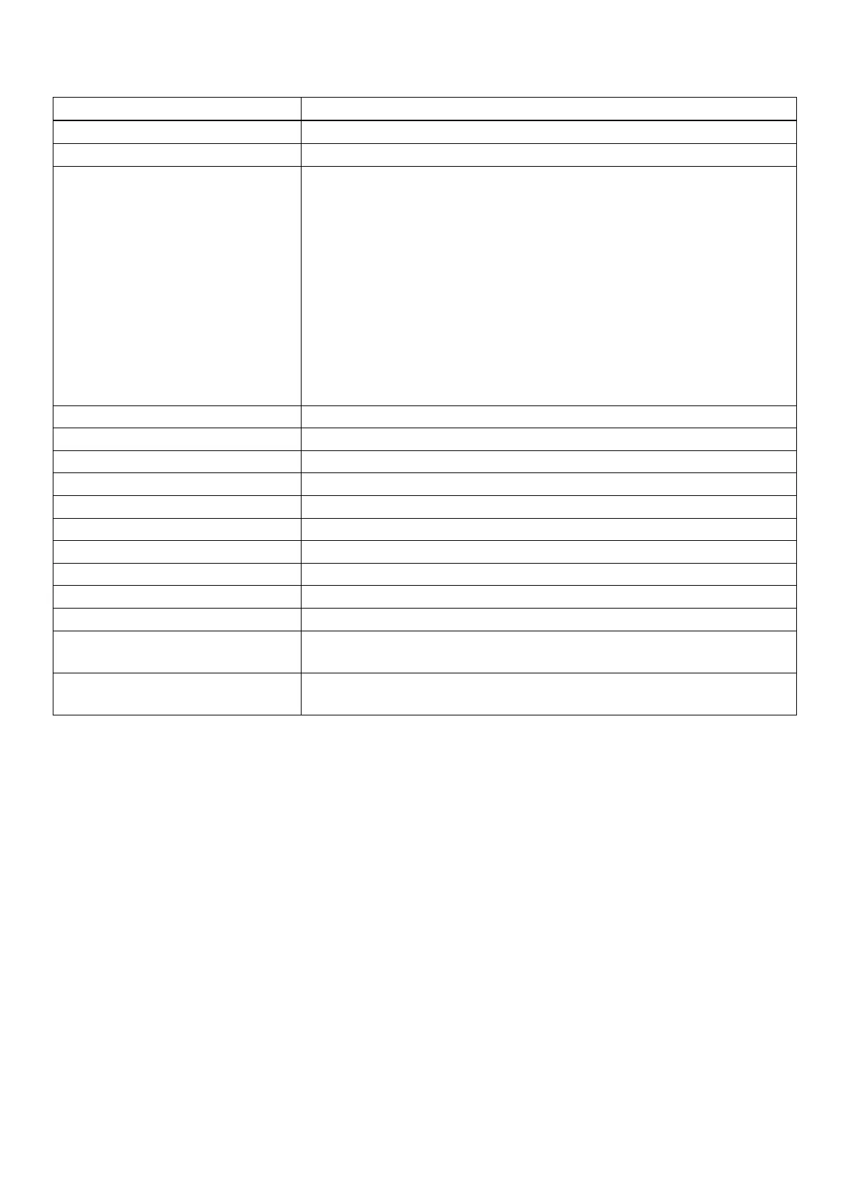 Specifications Value