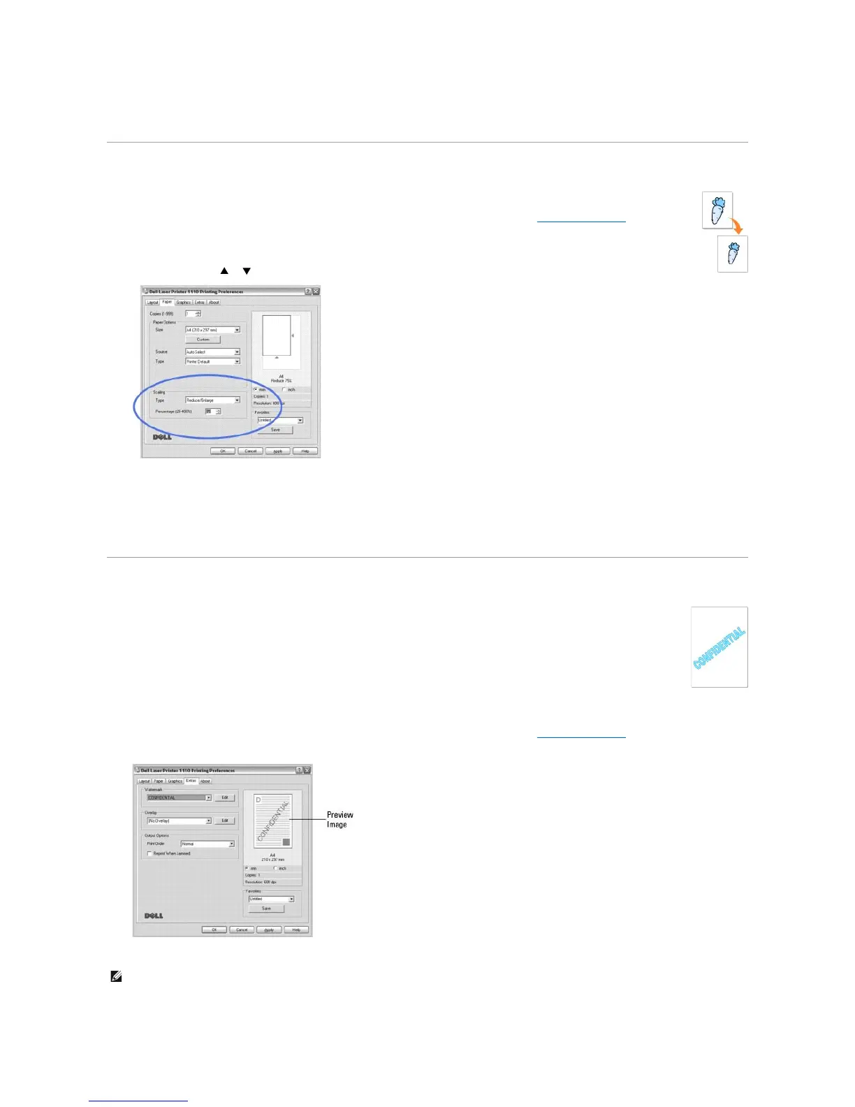 NOTE: The preview image shows how the page will look when it is printed.