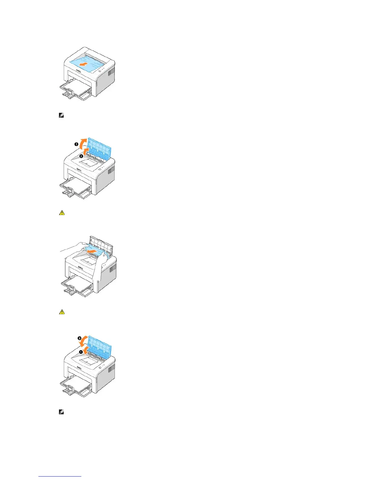 2. If you cannot see the paper in the output tray or the paper does not move when pulled, stop pulling and open the top cover and the inner cover.