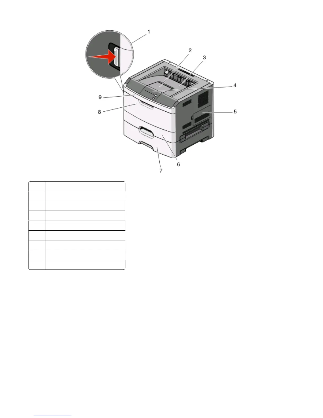 The following illustration shows the printer configured with an optional 550-sheet drawer: