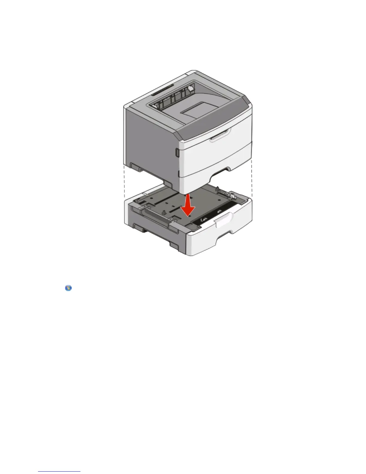 7 Align the holes in the printer with the positioning posts on the drawer, and lower the printer into place.
