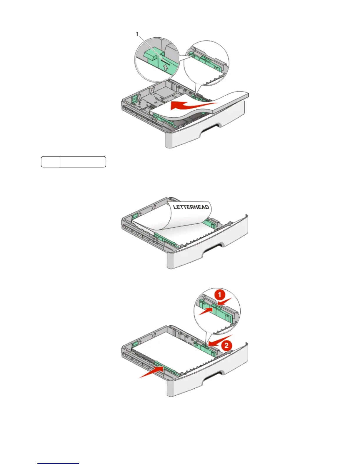 Note: When loading letterhead, place the top edge of the sheet toward the front of the tray. Load the letterhead