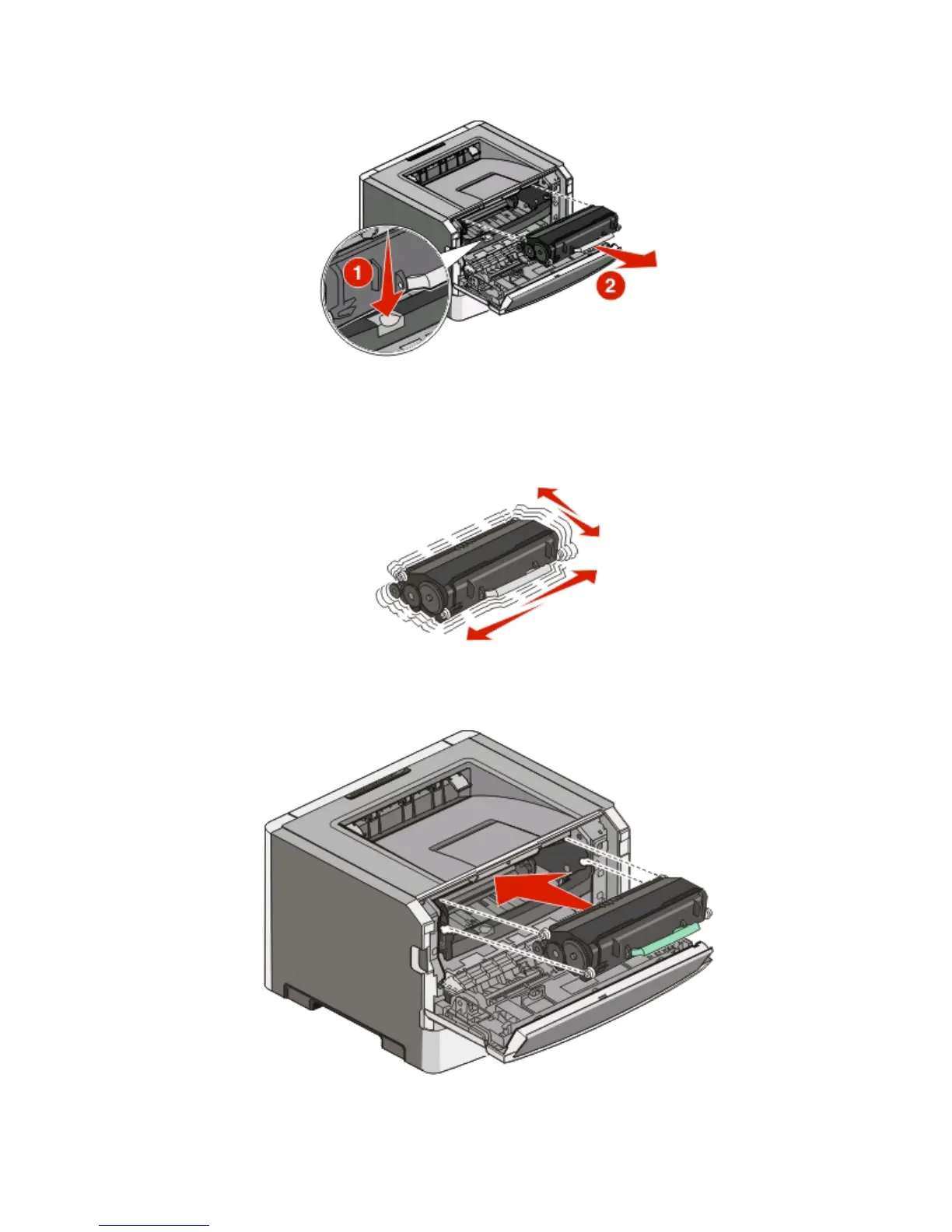 photoconductor kit. Push the toner cartridge in as far as it will go. The cartridge clicks into place when correctly