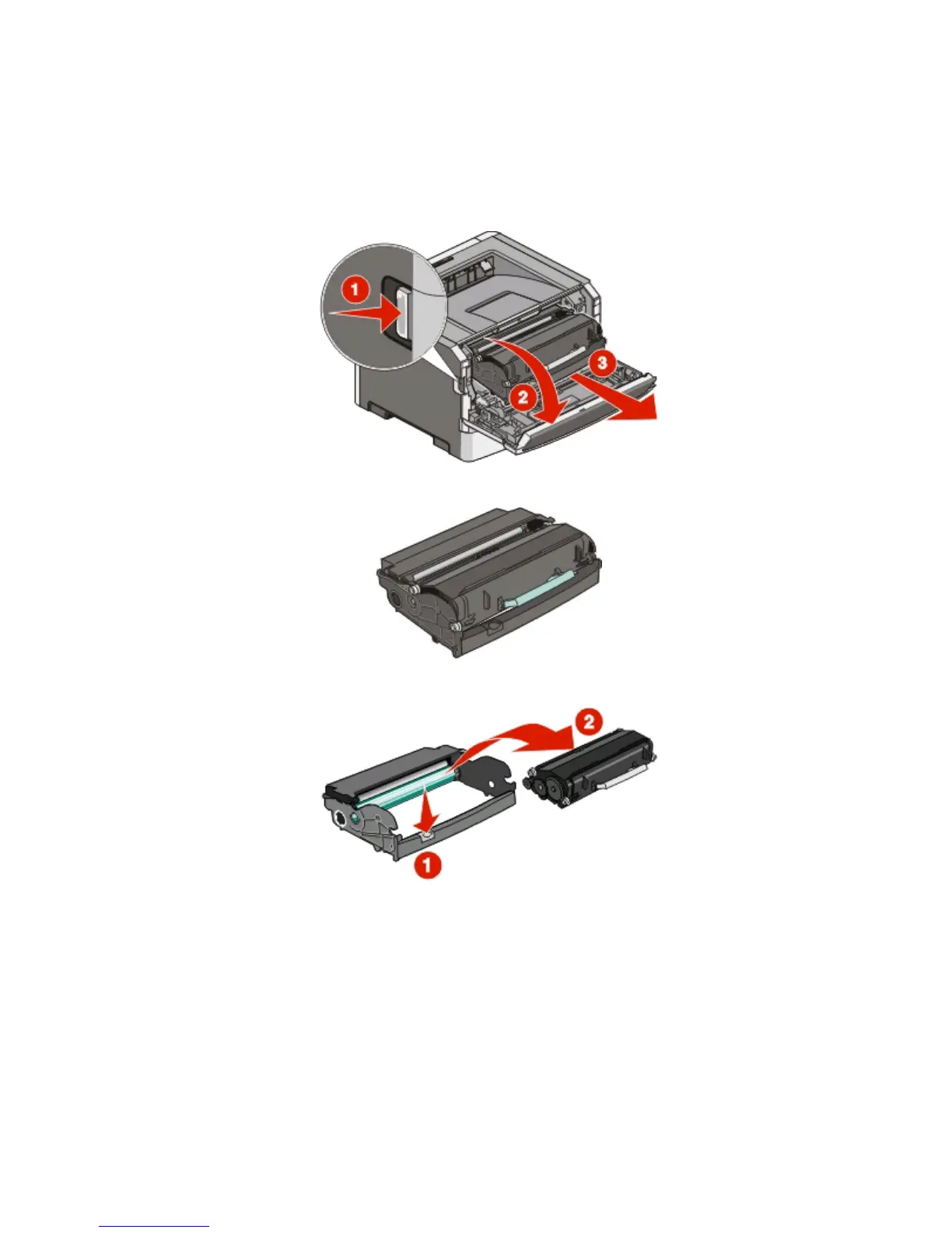 2 Pull the photoconductor kit and toner cartridge together as a unit out of the printer by pulling on the toner